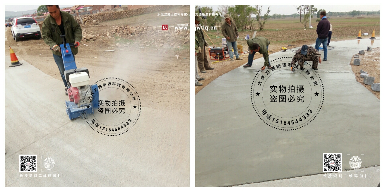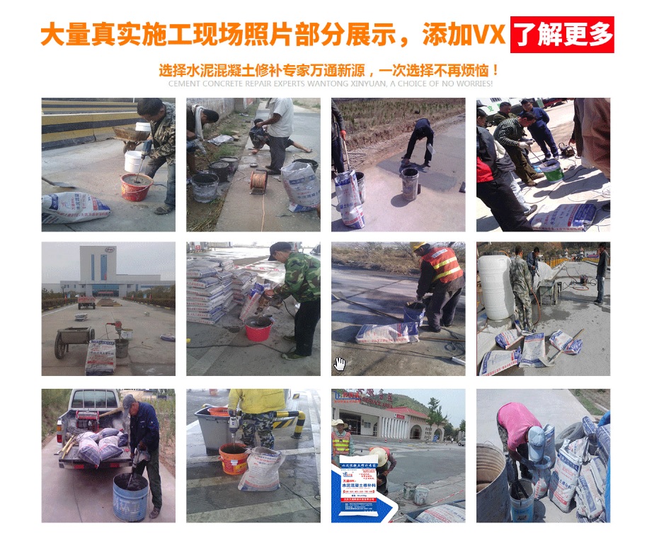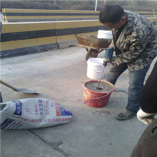 大慶萬(wàn)通新源科技有限公司獨(dú)有的混凝土路面高強(qiáng)速補(bǔ)料,是水泥混凝土路面病害修復(fù)的好材料。疲勞、凍融循環(huán)、彎曲壓力、滲水和基層破壞等原因都會(huì)引起水泥路面的破損,從而帶來(lái)高昂的維護(hù)費(fèi)用。與以往的剛性修補(bǔ)方法不同,混凝土水泥路面維修速補(bǔ)膠提供了一種獨(dú)特的柔性修補(bǔ)產(chǎn)品和技術(shù),高柔性、高抗拉性,可跨伸縮縫施工和高抗壓性使得混凝土快補(bǔ)產(chǎn)品為水泥混凝土路面提供了******性的修補(bǔ)。傳統(tǒng)的剛性修補(bǔ)方案,如環(huán)氧砂漿和快干水泥產(chǎn)品,由于其自身的粘結(jié)失效,抗疲勞性低以及與原路面不同的伸縮系數(shù),修補(bǔ)面會(huì)在短時(shí)間內(nèi)失效或產(chǎn)生新的裂縫,需要反復(fù)修補(bǔ),有效期短且費(fèi)用高昂。大慶萬(wàn)通新源科技有限公司的混凝土水泥路面維修速補(bǔ)膠可以隨原路面一起伸縮,移動(dòng),從而避免了粘結(jié)失效和產(chǎn)生新裂縫。萬(wàn)通快補(bǔ)產(chǎn)品優(yōu)異的粘結(jié)性、柔韌性和高防滑性,特別適用于水泥路面的淺層粘合修補(bǔ),多邊角混凝土板層修補(bǔ),跨伸縮縫修補(bǔ)以及路面沉陷修補(bǔ)。萬(wàn)通混凝土病害修補(bǔ)料針對(duì)混凝土起皮起沙、斷板裂縫、蜂窩麻面、坑槽露石子、漏筋掉皮、橋梁的掉皮漏筋快速通車(chē)使用時(shí)間長(zhǎng)。應(yīng)用萬(wàn)通快補(bǔ)產(chǎn)品,施工后一天就可以恢復(fù)交通。大慶萬(wàn)通新源科技有限公司的萬(wàn)通水泥路面維修速補(bǔ)膠適用于高速公路、機(jī)場(chǎng)路面、農(nóng)村村村通路面、廠(chǎng)坪、學(xué)校操場(chǎng)、市區(qū)公路、小區(qū)路面、橋梁、水泥路面的修補(bǔ)。使用萬(wàn)通特快補(bǔ)材料修補(bǔ)路面可以一勞永逸! 水泥地面起砂怎么辦,混凝土修補(bǔ)劑混凝土地面起砂,混凝土地面修補(bǔ),地面起砂怎么辦,
